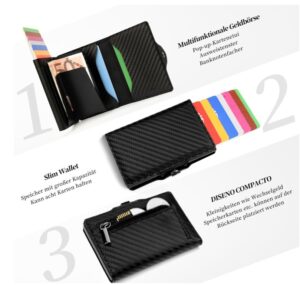 - This ultra-thin wallet features a triple function design,verfügt über eine Metall-Kartenbox. Alle Karten werden automatisch organisiert, Es ist sehr einfach und bequem zu bedienen,Papiergeld, Karten und Münzen können alle vernünftig aufbewahrt werden, was Ihre Reise erleichtert,Diese leichte slim wallet ist klein, modisch, umweltfreundlich und langlebig und für eine breite Palette von Benutzern geeignet.Multi functional mini wallet.