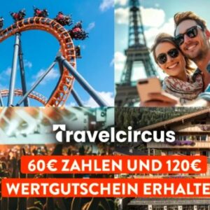 Bei ALDI SÜD in der Filiale oder online für alle (Dealink) gibt es einen 120 € Wert Gutschein für Travelcircus für nur 60 €. Der Gutschein kann bis zum 31.12.2026 auf Travelcircus.de eingelöst werden. Es können maximal zwei Gutscheine gekauft werden. Die Gutscheine können ab sofort und bis zum 2.2.2025 gekauft werden.