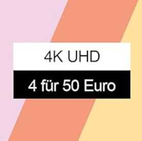 Bei Amazon gibt es gerade folgendes Sonderangebot: 4 Filme auf 4K UHD Blu-ray für 50€ (100 Filme zur Auswahl). Dadurch zahlt man nur noch 12,50€ pro Film/Stück. Aktion gültig vom 16 Okt. 2023 bis 26 Okt. 2023 – Bedingungen sind auf der Aktionsseite nachzulesen.