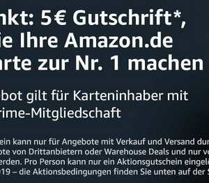 Der Aktionsgutschein wird im Amazon Kundenkonto nur hinterlegt, wenn der Kunde die Aktionen zur Teilnahme am Angebot innerhalb des Aktionszeitraums vom 05.02.2019 – 05.04.2019 durchgeführt hat. Der Aktionsgutschein wird bis zum 05.07.2019 automatisch beim nächsten Einkauf bei http://www.amazon.de an der Kasse eingelöst. Der Aktionsgutschein kann nur für Angebote mit Verkauf und Versand durch Amazon und nicht für Bücher, Kindle eBooks, Zeitschriften, Kauf von Geschenkgutscheinen oder Angeboten von Drittanbietern oder Warehouse Deals verwendet werden, und nur von volljährigen Personen eingelöst werden. Auf Geschenkverpackungen, Versandkosten oder sonstige Kosten kann der Aktionsgutschein nicht angerechnet werden. Je Amazon-Kunde kann nur ein Aktionsgutschein eingelöst werden. Jeder Amazon-Kunde und -Account kann nur einmal an dieser Aktion teilnehmen. Pro Bestellung kann nur ein Aktionsgutschein eingelöst werden. Das Angebot ist nicht übertragbar und kann nicht mit anderen Aktionen kombiniert werden. Der Aktionsgutschein kann nur von Nutzern eingelöst werden, die in den letzten drei Monaten nicht an einer Amazon.de VISA Karten Promotion bei Amazon.de teilgenommen haben. Zudem wird der Aktionsgutschein nur aktiviert, wenn eine gültige Amazon.de VISA Karte als primäres Zahlungsmittel über die Website http://www.amazon.de hinterlegt wird (über die 1-Click-Einstellungen) und der Einkauf mit einem Amazon.de VISA Zahlungsmittel getätigt wird. Das Angebot gilt nur für Kunden, denen eine Banner-Werbung zur Bewerbung des Angebots angezeigt wurde. Um das Angebot in Anspruch zu nehmen, muss der Kunde zuerst auf die Banner-Werbung klicken und anschließend weitere Aktionen durchführen. Ein Amazon.de-Konto und eine im Konto hinterlegte gültige Amazon.de VISA Karte sind verpflichtend, um den Aktionsgutschein zu erhalten und diesen einlösen zu können. Sollte, aus welchem Grund auch immer, die Amazon.de VISA Karte abgelaufen, abgelehnt oder ungültig sein, erlischt die Berechtigung den Aktionsgutschein zu erhalten oder diesen einzulösen. Amazon behält sich das Recht vor, das Angebot jederzeit zu verändern oder zu beenden. Bei Missachtung oder einem Verstoß gegen diese Bedingungen ist das Angebot ungültig und der Aktionsgutschein wird nicht im Amazon.de-Kundenkonto hinterlegt