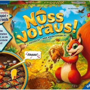- Lieferumfang: 1 Eichhörnchen (Elektronische Einheit) 1 Würfel 13 Eichel-Chips (Kunststoff, 9 braun/4 gelb) 12 Abdeckplättchen 24 Waldplättchen 4 Eichel-Plättchen (Pappe) 1 Eichel (Pappe) 1 Anleitung