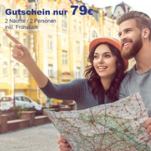 Bei a&o bekommt ihr für 79,90 € aktuell einen Hotelgutschein für 2 Nächte/2 Personen inkl. Frühstück