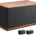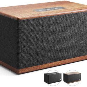 Der BT5 ist ein kleiner Bluetooth-Lautsprecher mit sauberem und klarem Klang mit einem tiefen Bass. Er ist in drei Ausführungen erhältlich – Treibholz, Walnuss und Schwarz. Mit einem Stoffgitter, das die Vorderseite und Seiten bedeckt, passt er perfekt in die meisten Räumlichkeiten. Der 3,5-mm-Eingang bietet bei Bedarf einen Kabelanschluss. Er ist robust und aus hochwertigen Materialien gefertigt.
