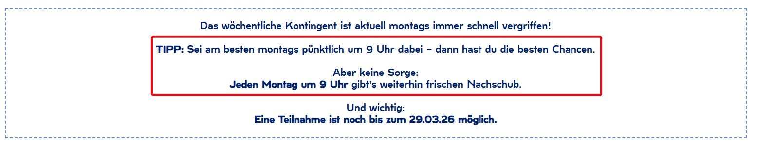diki 07.01.2026, 16:45 #Leider diese Woche schon keine Einlösungen mehr verfügbar.