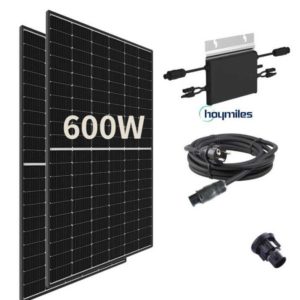 1 Wechselrichter inkl. Endkappe: Hoymiles HM-600Hoymiles ist der Pionier der Mikrowechselrichter-Hersteller und gibt diesem Produkt 12 Jahren Garantie. Dieser Modulwechselrichter wandelt den vom Solarmodul erzeugten Gleichstrom zu Wechselstrom um, der sich direkt in das Hausnetz einspeisen lässt.Masse: 25 x 17 x 2,8 cmGewicht: 3kgGarantie: 12 Jahre HerstellergarantieDokumente: Datenblatt, Garantienachweis, Bedienungsanleitung, Zertifikat für den NA-Schutz