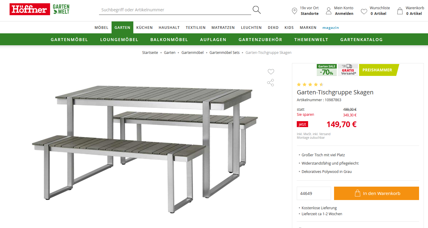 Bei Möbel Höffner Garten Sale bis zu 70%