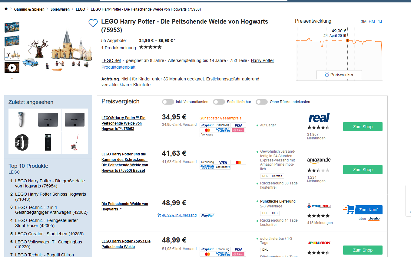 Ein Beispiel den LEGO Harry Potter – Die Peitschende Weide von Hogwarts (75953) für 34,95 statt PVG ab 41,63 Euro inkl.Versand.