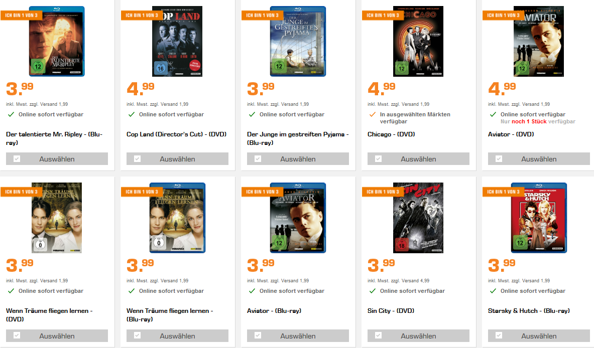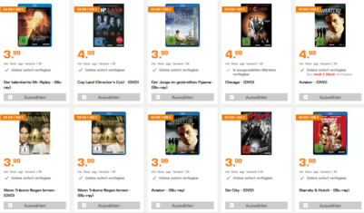 Bei Saturn bekommt man derzeit 3 Filme für 10€ (zur Auswahl stehen über 130 Filme)