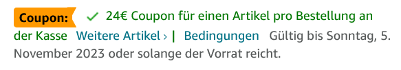 Dafür bitte den 24€ Coupon aktivieren und den Code SLQSILXS an der Kasse eingeben.