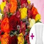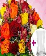 Blume Ideal – bunter Rosenstrauß mit Gratis Vase