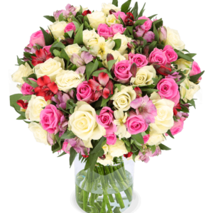 - Inhalt: Pinke und Weiße Rosen & Inkalilien (40-50cm Länge)