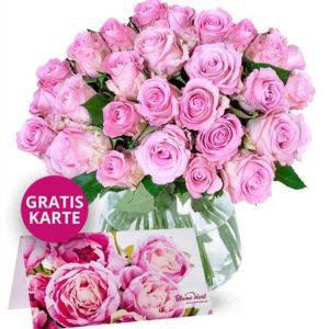 Blumeideal 35 roséfarbene Rosen+Gratis Karte