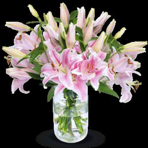 Diese 12 pinken Lilien versprühen gute Laune und Frohsinn und begeistern mit ihren besonders großen rosa Blüten einfach jeden. Ihre ausdrucksstarke Form und ihr toller Duft machen sie zu einem herrlichen Geschenk, um die beste Freundin, die Mama, die Oma oder die Schwester aufzumuntern oder einfach deine Bewunderung und freundschaftliche Liebe auszudrücken. Und auch als Dekoration in den eigenen vier Wänden sorgen die eleganten Hingucker für positive Gefühle und ein tolles Ambiente.