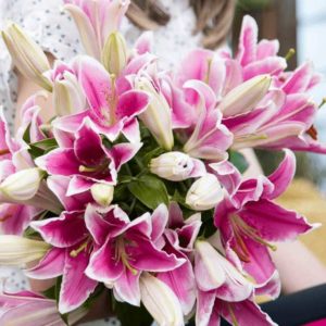 - Inhalt: 20 pinke Lilien (50-60cm Länge, 3-4 Blüten pro Stiel)