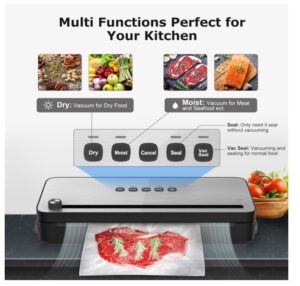 - Nass- und Trockenmodus: Im Trockenmodus können Snacks, Nüsse usw. gelagert werden, und im Nassmodus können Fleisch, Meeresfrüchte und Gemüse gelagert werden. Auch für Schinken, gekochtes Essen, Obst usw. geeignet, sorgt für eine optimale Konservierung verschiedener Lebensmittel und ist auch ein Kochassistent für Sous-Vide!