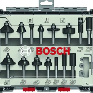 Bosch 15tlg. Fräser Set Mixed für Holz, Zubehör Oberfräsen mit 8 mm Schaft für 38,99€ (statt 52,42€)