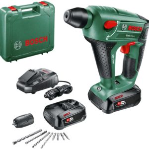 - Lieferumfang: UneoMaxx, 2x 2,5 Ah Akku, Ladegerät, Spannbohrfutter, 2 SDS-Quick Betonbohrer 6/8 mm, 2 Hex-Schaftbohrer 5/6 mm, 4 Bits, Koffer