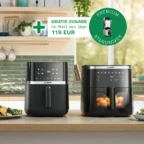 Die Airfryer erhaltet ihr ab 119 €. Dazu erhaltet ihr den Standmixer im Wert von 119 € gratis dazu. Macht also einen Vorteil von 119 €. Der Vorteil ist immer 119 €, egal für welchen Airfryer ihr euch entschiedet.