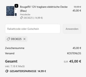 Bei bougerv bekommt ihr die BougeRV 12V tragbare elektrische Decke für 45€