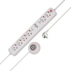 6er Schutzkontakt-Steckdosenleiste mit 1,5 m Kabellänge H05VV-F 3G1,5, Trittschalter (1,5m flexible Steuerleitung) und erhöhtem Berührungsschutz