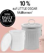 Der Daily Deal Vorteil gilt nur am 11.01.2019 im Butlers-Onlineshop in Deutschland und Österreich. Sie erhalten im Aktionszeitraum 10% Rabatt auf die LITTLE OSCAR Mülltonen (Art.Nr.: 10217949, 10217944, 10217945, 10217940, 10217941, 10217939, 10217948). Die Aktion ist nicht mit Rechnungskauf, anderen Rabatten und Aktionen kombinierbar. Der Rabatt wird automatisch im Warenkorb abgezogen. Nur solange der Vorrat reicht.