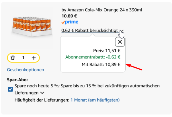 Derzeit bekommen Amazon Prime und Spar Abo Mitglieder folgendes Angebot: by Amazon Cola-Mix mit Orangengeschmack 24 x 330ml für 10,93€