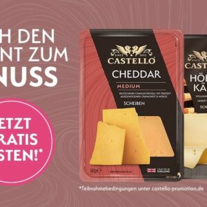 Mit der aktuellen Cashback-Aktion von Castello hast du die Möglichkeit, hochwertige Käse-Spezialitäten ganz ohne Risiko auszuprobieren. Die Marke steht für besonderen Genuss, sorgfältig ausgewählte Zutaten und eine große Vielfalt an intensiven Geschmacksrichtungen. Egal ob mild, würzig oder besonders aromatisch – hier ist für jeden Käseliebhaber etwas dabei. Besonders praktisch: Du kannst eines der Aktionsprodukte kaufen und erhältst dein Geld vollständig zurück. Damit eignet sich die Aktion ideal, um neue Sorten kennenzulernen. Die Teilnahme ist unkompliziert und schnell erledigt.