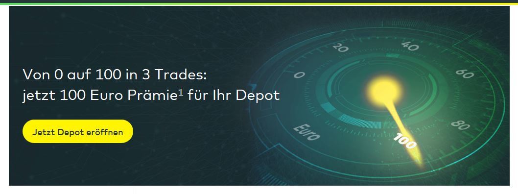 1 Sie erhalten 100 Euro Prämie, wenn Ihr Depoteröffnungsantrag als Neukunde im aktuell laufenden Kalendermonat bei uns eingegangen ist und Sie sich spätestens bis zum Ende des Folgemonats legitimiert haben und mindestens 3 Trades (außer Eurex, CFD-Handel und Aktien-Neuemissionen) getätigt haben. Die Prämie über 100 Euro schreiben wir Ihrem Verrechnungskonto im darauf folgenden Monat gut. Beispiel: Sie eröffnen Ihr Depot im Juni 2019, legitimieren sich und tätigen mindestens 3 Trades bis Ende Juli 2019 und erhalten 100 Euro Prämie im August 2019 auf Ihr Verrechnungskonto. Zu den Trades zählen auch Sparplanausführungen. Neukunde ist, wer in den letzten 6 Monaten vor Depoteröffnung nicht bereits Kunde der comdirect war. comdirect behält sich vor, dieses Angebot jederzeit zu modifizieren, zu verlängern oder zu beenden. Die mehrfache Teilnahme ist ausgeschlossen. Jeder Teilnehmer hat – auch bei Eröffnung von mehr als einem Depot – nur ein Mal Anspruch auf den Prämienerhalt. comdirect Mitarbeiter sind von der Aktionsteilnahme ausgeschlossen.
