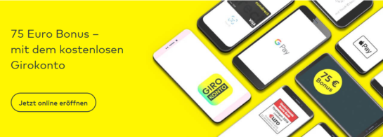 Eröffnen Sie jetzt Ihr kostenloses Girokonto bei Deutschlands bester Bank1 und genießen Sie alle Vorteile unseres Girokontos. Sichern Sie sich dabei zusätzlich 75 Euro Bonus2 mit Apple Pay oder Google Pay.