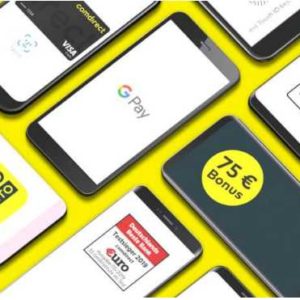 - min. drei mobile Zahlungen ab 0,01 Euro mit der Visa-Karte über Apple Pay oder Google Pay 75 Euro Bonus (von der comdirect für mobile Zahlungen)
