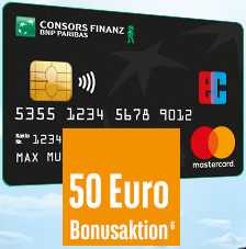 Consors Finanz Mastercard für Neukunden 50 Euro nach einem Einsatz bekommen (kein Mindestumsatz erforderlich).