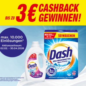 Jetzt könnt ihr ein Cashback von bis zu 3 € beim Kauf von Dash erhalten.
