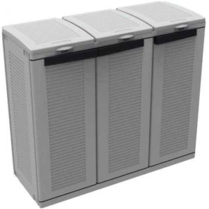 Terry EcoCab 3 MülleimerPlastikschrank zur MülltrennungKonzipiert für die getrennte Abfallsammlung. Praktisch und ideal für diejenigen, die Platzprobleme haben, kann dieser Abfallbehälter auch im Freien, auf dem Balkon oder der Terrasse unter einem Unterstand aufgestellt werden (Müllsäcke nicht im Lieferumfang enthalten).