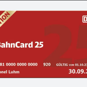 Deutsche Bahn – BahnCard 25 (2.KI) für 33€ (statt 59,90€) [ Ab 01.10.23-31.10.23]