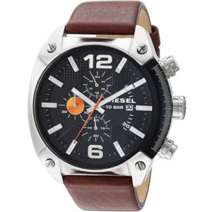 - Diesel Herren Uhr – Silbernes rundes Edelstahlgehäuse (Durchmesser 54 mm) glänzend und gebürstet – Wasserdicht bis 10 ATM