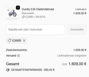 Hey, falls ihr ein E-Bike sucht, bei duotts bekommt ihr gerade das Duotts E26 Elektrofahrrad für nur 1.609€