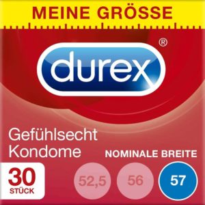 - Für jeden Mann das passende Kondom – jetzt austesten und die richtige Passform für sich finden! Das Set enthält Kondome mit einer Breite von 57mm – erhältlich sind auch die Breiten 52,5mm und 56mm