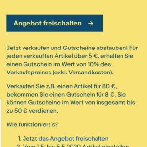 Verkauft ihr z.B. einen Artikel für 75 €, bekommt ihr einen Gutschein für 7,50 €.