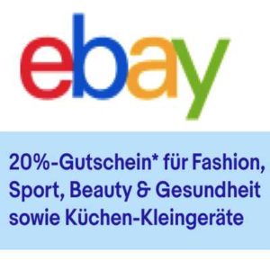Heute ab 9 Uhr gibt es wieder einen 20% Gutschein bei eBay für Fashion, Sport, Beauty & Gesundheit sowie Küchen-Kleingeräte.