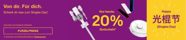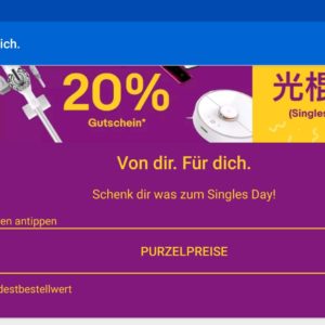 Ebay: 20% Rabatt zum Single Day am 11.11.2019 auf ausgewählte Artikel