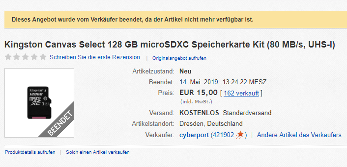 lemalix 15.05.2019, 14:01 #Die als Beispiel genannte MicroSDXC Karte gibt es bereit nicht mehr…