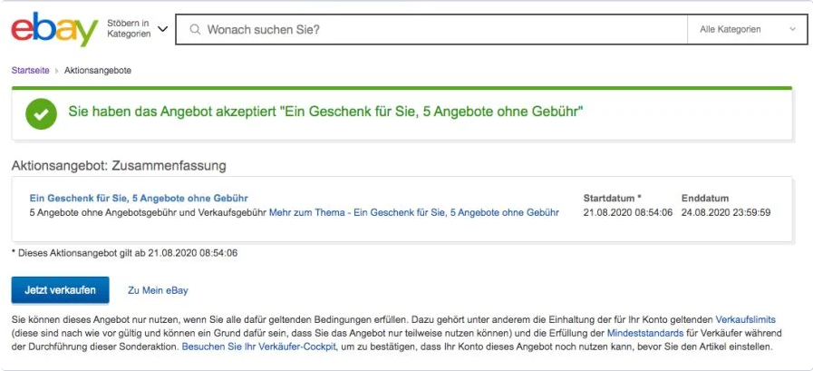 Für eingeladene Verkäufer kann man jetzt 5x kostenlos verkaufen. Gültig bis 24.08.2020.