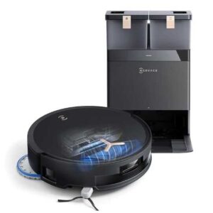 - 【OMNI-Station mit automatischer Reinigungsmittelzugabe】Die All-in-One-OMNI-Station bietet erweiterte Funktionen, darunter automatisches Entleeren, Heißlufttrocknen bei 45 °C und automatische Reinigungsmittelzugabe. Durch die bidirektionalen Schabern und das Wischmoppwaschen mit 40-75 °C heißem Wasser reinigt sie sowohl den Mopp als auch die Basis durch automatische Selbstreinigung.