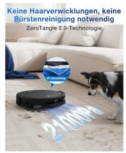 - 【15.000 Pa Saugleistung und ZeroTangle 2.0】 DEEBOT T50 PRO OMNI liefert eine 21.000 Pa starke Saugkraft, damit verschlingt er feinen Schmutz und groben Dreck fast wie ein Hurrikan. Die ZeroTangle 2.0-Technologie mit dreifachen V-förmigen Strukturen sammelt, hebt und entwirrt Haare aktiv und sorgt für eine Verwicklungsrate von nahezu 0 % – selbst bei langen Haaren.