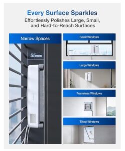 - 【Schlankes & kompaktes Design】Durch sein einzigartig kleines und dünnes Design kann der WINBOT MINI neben bodentiefen, rahmenlosen oder kippbaren Fenstern nun auch Bereichen abdecken, die größere Fensterputzroboter bislang nicht erreichen konnten. Der WINBOT MINI kann sehr kleine Fenster mit einer einzigen Seitenlänge von weniger als 30 cm reinigen und auch unterhalb von Fenstergriffen (der Abstand zwischen Griff und Glas beträgt etwa 50 – 80 mm).