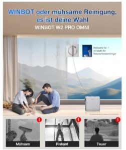 - 【6-in-1 Multifunktionsstation】Der WINBOT W2 PRO OMNI besitzt eine hochmoderne 6-in-1 Multifunktionsstation, die die Fensterreinigung bequemer, sicherer und einfacher macht. Sie kann sowohl als Steuerungsdisplay, aber auch als Ladegerät, Ständer und tragbarer Koffer des Roboters dienen.