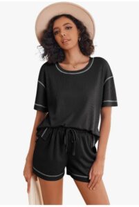 Ekouaer Schlafanzug Damen Kurz Pyjama Set