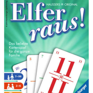 Elfer Raus! von Ravensburder, der beliebte Kartenspiel-Klassiker für die ganze Familie! Seit Generationen das beliebte und unterhaltsame Kartenspiel für die ganze Familie. Selbst Karten ablegen und die lieben Mitspieler blockieren ? und dann plötzlich Schluss machen: Da lacht das Spielerherz! Elfer raus! besticht durch seine einfachen Regeln und hohen Spielreiz.