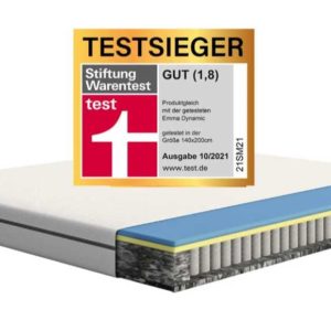- Kernaufbau: ca. 12 cm hoher 5-Zonen Tonnentaschenfederkern mit ca. 250 Federn pro m² + 3x Schaumabdeckung (Oberseite, mittlere Lage und Unterseite)