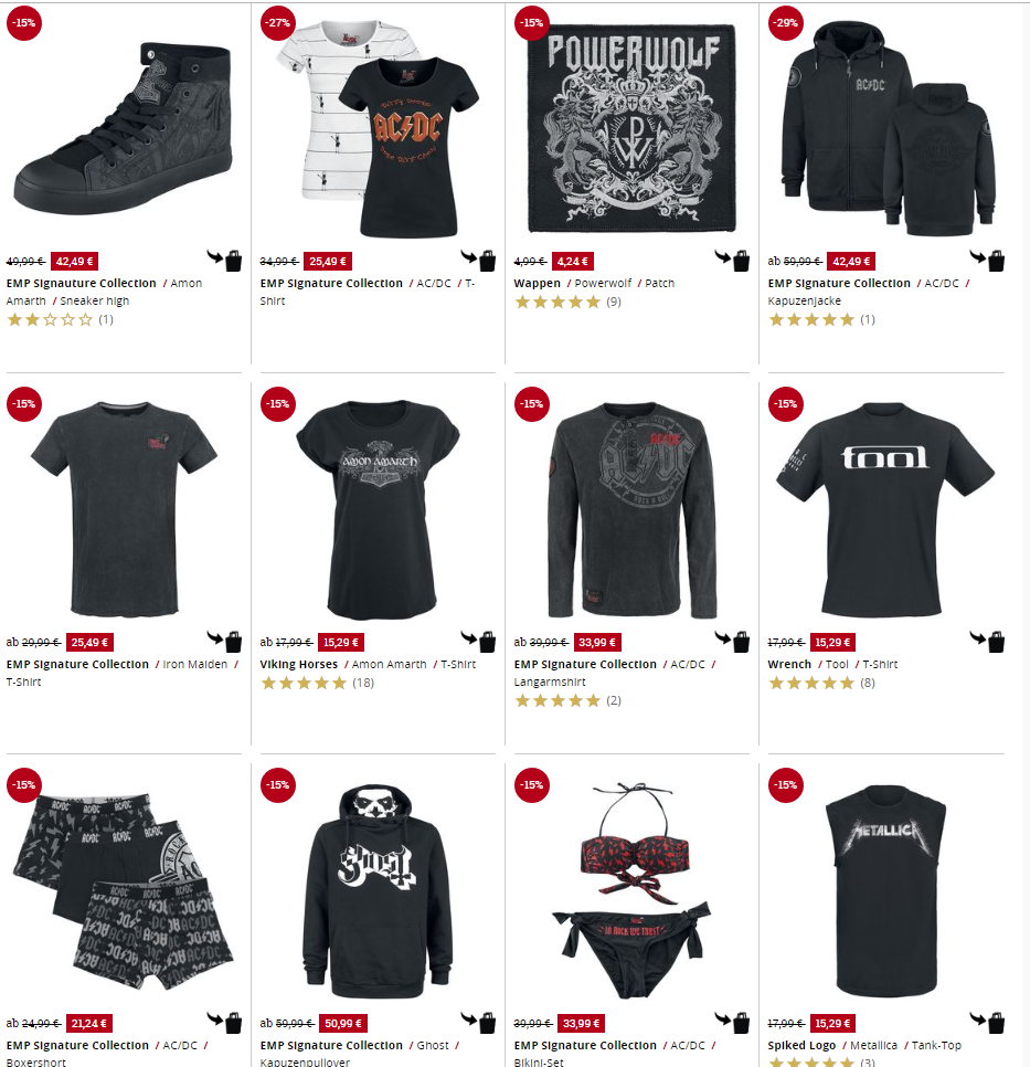 Bei EMP.de bekommt Ihr nur Heute 15% Rabatt auf Band Merch Artikel.